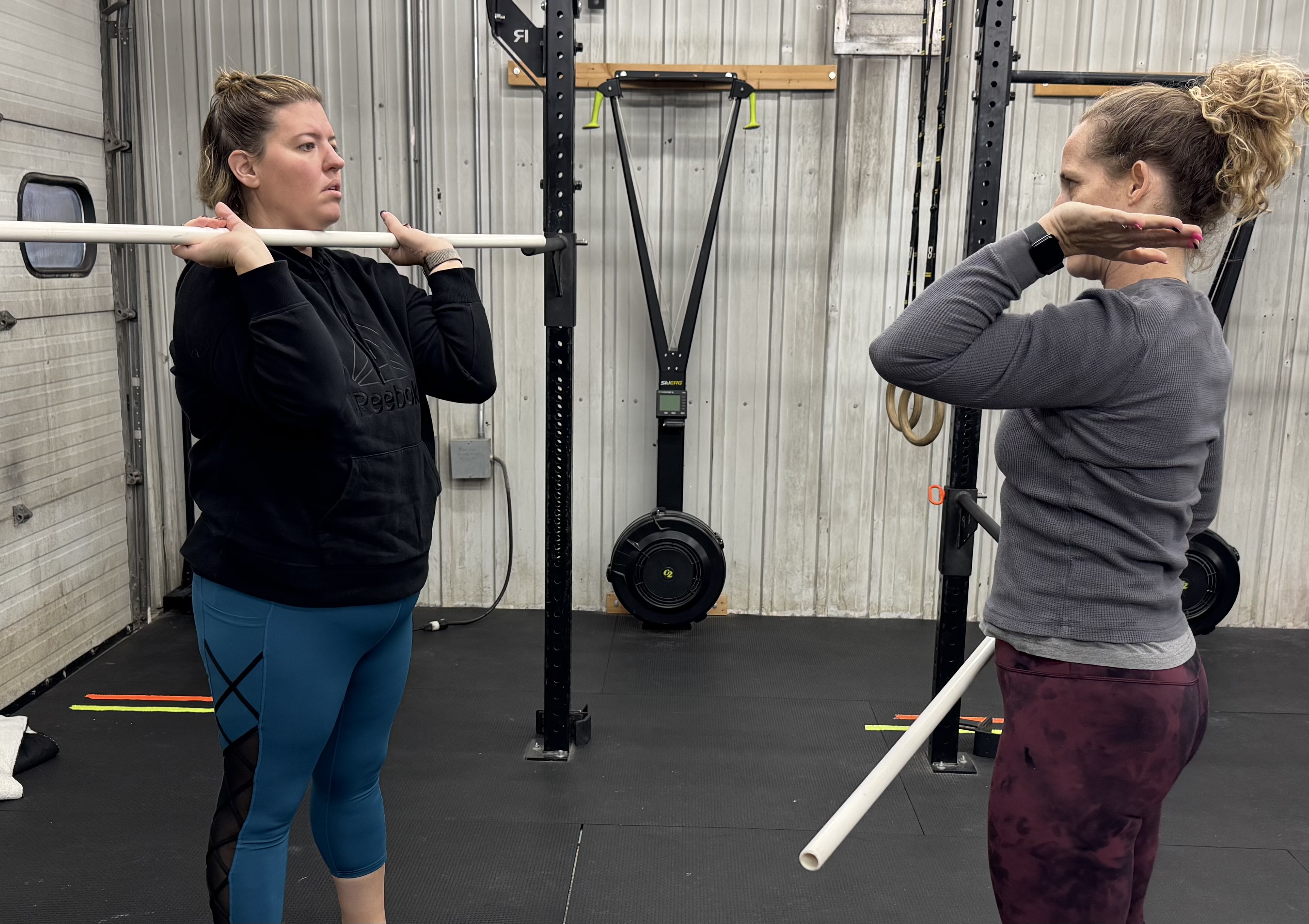 We at CrossFit Viroqua start everyone with a PVC Pipe. Form and technique first, then intensity of weight and repetitions.